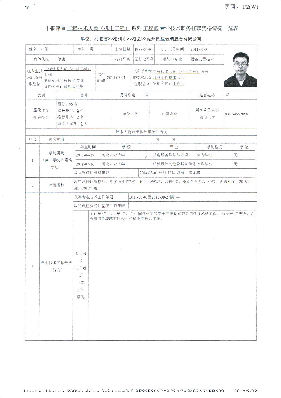 2018年職稱申報(bào)人員公示信息