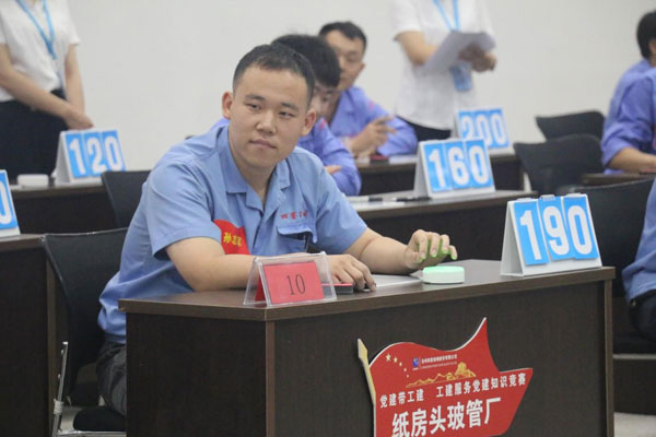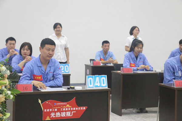 四星公司黨支部書記、董事長王煥一在活動祝詞中指出,通過競賽把參賽隊員的工匠風范發揮出來,把參賽隊員的愛黨愛崗敬業精神展現出來,同時要求將繼續做實黨建帶工建工作機制,充分發揮企業主體作用,讓廣大產業工人唱主角,積極投身改革,為企業高質量發展添磚加瓦,從而實現企業發展與員工成長的同頻共振。 本次知識競賽共有6支代表隊參加,分別為公司科室代表隊、玻瓶一廠代表隊、玻瓶二廠代表隊、紙房頭廠區玻管廠代表隊、光熱廠區玻管廠代表隊、光熱廠區玻瓶廠代表隊,每支代表隊由3名成員組成。競賽分為個人必答題、搶答題、風險題和觀眾互動題4種題型,各隊參賽選手應按照不同題型要求答題。比賽中,各代表隊選手相互配合,搶答積極,回答精準,現場氣氛緊張熱烈。